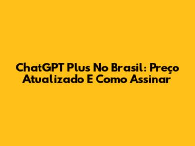 ChatGPT Plus No Brasil: Preço Atualizado E Como Assinar