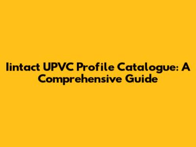 Iintact UPVC Profile Catalogue: A Comprehensive Guide