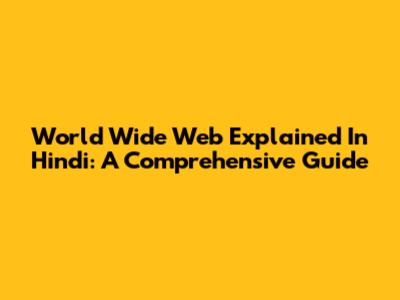 World Wide Web Explained In Hindi: A Comprehensive Guide
