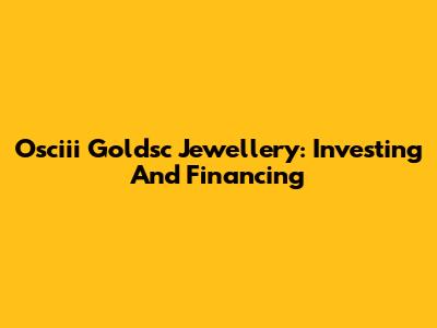 Osciii Goldsc Jewellery: Investing And Financing